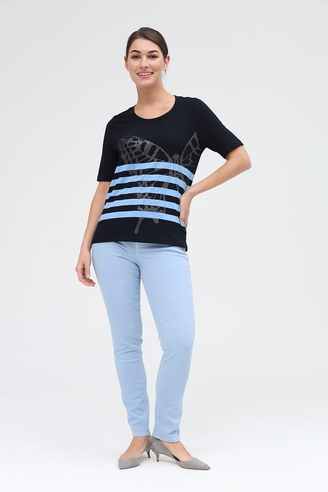 Женская футболка Gerry Weber черного цвета с оригинальным принтом в виде бабочки. Модель выполнена из 100% органического хлопка, обеспечивающего комфорт и приятные ощущения при носке. Состав: хлопок органич. 100%