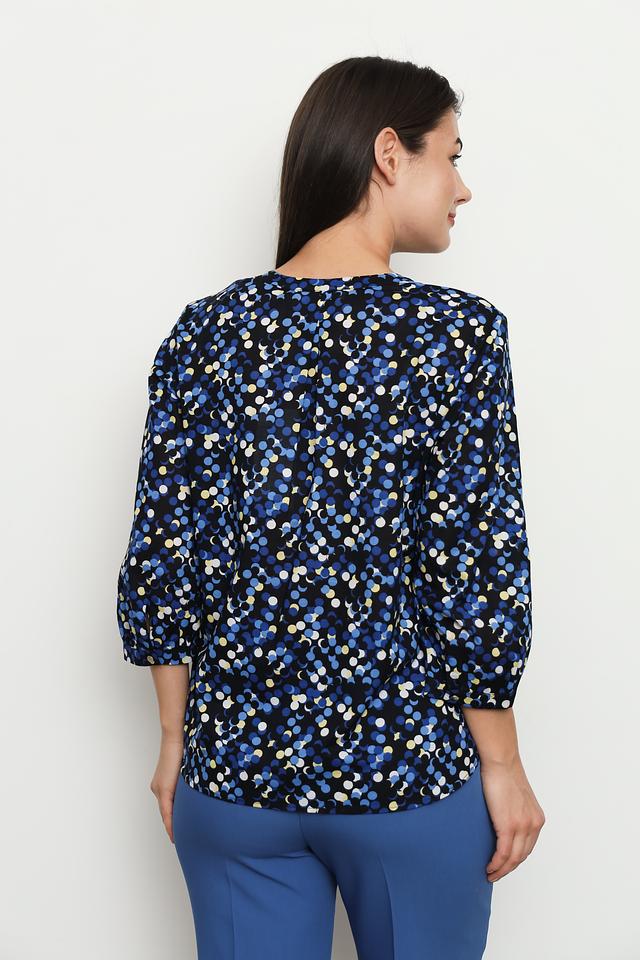 Эта блуза от Gerry Weber – идеальный выбор для создания элегантного и непринужденного образа. Блуза выполнена в чёрном цвете и украшена ярким принтом в горошек, выполненным в различных оттенках синего и жёлтого.
