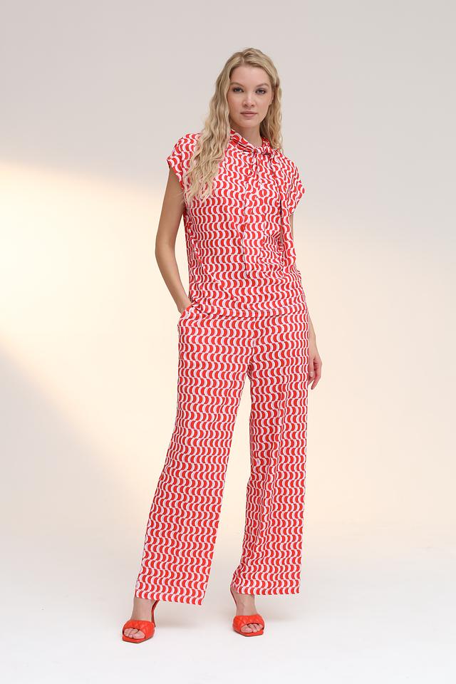 Блуза Gerry Weber красного цвета с оригинальным геометрическим принтом станет ярким акцентом вашего образа. Модель с короткими рукавами и завязками на воротнике добавит легкости и женственности. Состав: переработ.полиэстер 90%, эластан 10%