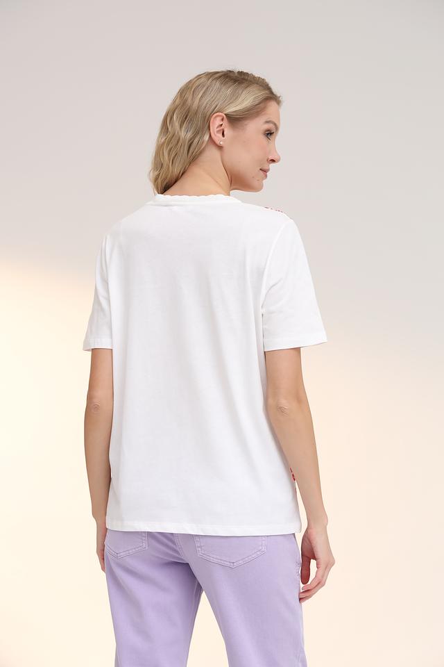 Женская футболка Gerry Weber белого цвета с ярким красным цветочным принтом. Изготовлена из органического хлопка, обеспечивающего комфорт и воздухопроницаемость. Стильный и удобный вариант для повседневного образа. Состав: хлопок органич. 100%