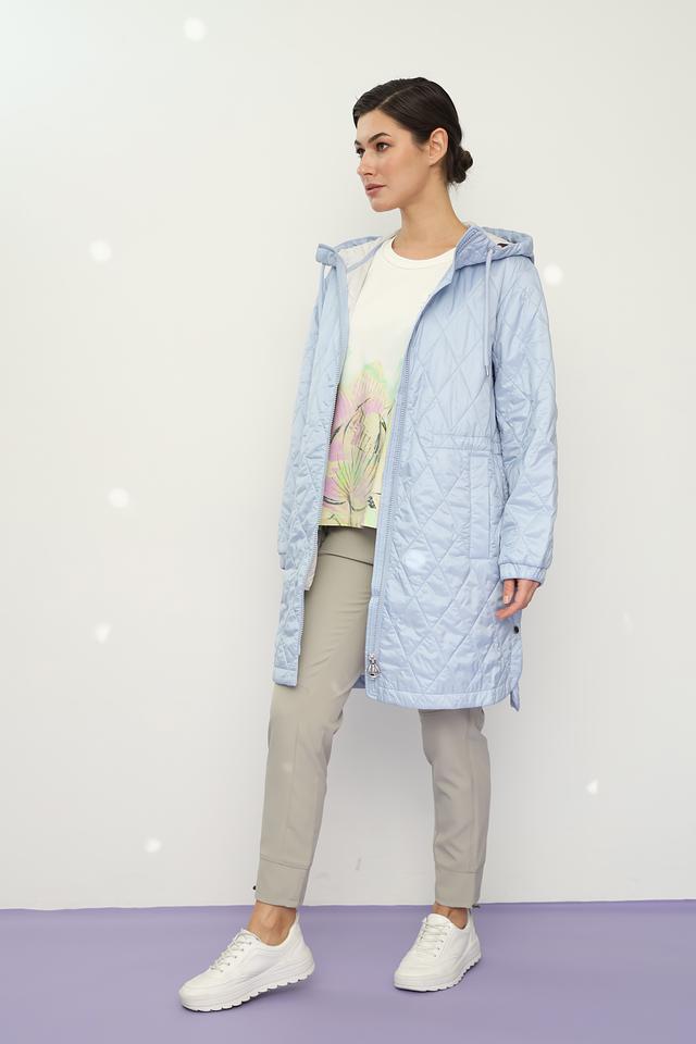 Пальто Gerry Weber – это стильное и практичное решение для прохладной погоды. Данная модель выполнена в нежном голубом цвете и отличается оригинальным стеганым дизайном, который придает ей современный вид.