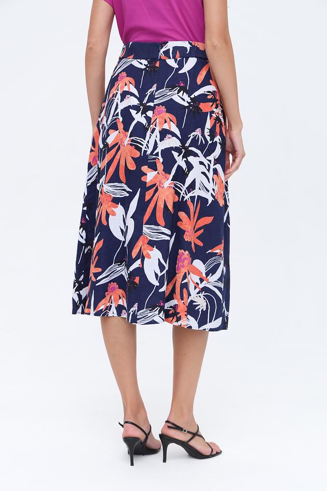 Юбка Gerry Weber синего цвета с ярким цветочным принтом – идеальный выбор для создания стильного и женственного образа. Модель выполнена из натурального льна, что обеспечивает комфорт в жаркую погоду. Юбка имеет завязки на талии и боковые карманы. Состав: лен 100%