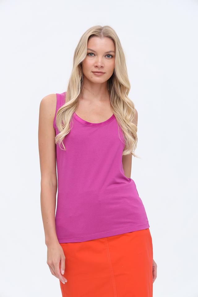 Топ имеет классический крой с округлым вырезом горловины и широкими бретелями. Благодаря сочетанию хлопка, модала и эластана, он отлично сидит по фигуре, не сковывает движений и приятен к телу.