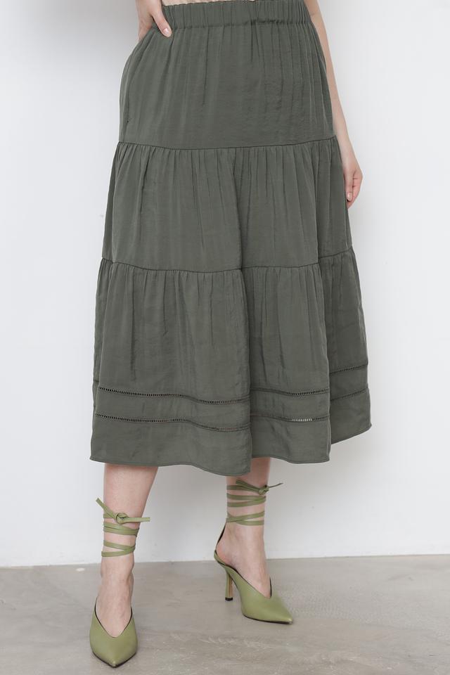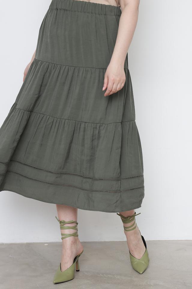Эта юбка от Gerry Weber EDITION выполнена в спокойном хаки цвете и станет отличным дополнением к вашему гардеробу. Модель имеет длину миди и многослойный крой, создающий лёгкий и воздушный силуэт.
