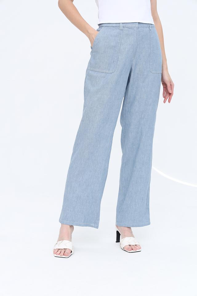 Брюки имеют прямой крой, который обеспечивает комфортную посадку и свободу движений. Они изготовлены из высококачественного хлопка с добавлением льна и эластана, что делает их приятными на ощупь и практичными в носке. Наличие боковых карманов добавляет функциональности.