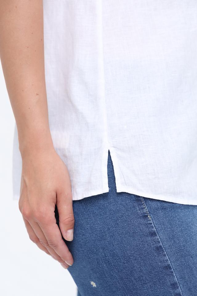 Белый цвет рубашки универсален и легко сочетается с любой одеждой. Она отлично подойдёт для создания как повседневных, так и более формальных образов. Рубашку можно носить с джинсами, брюками или юбкой.