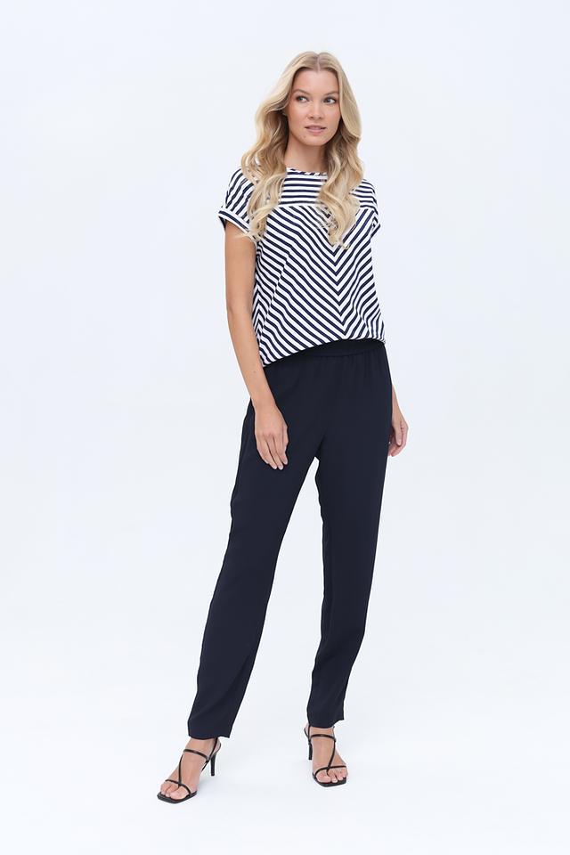 Женская футболка Gerry Weber синего цвета с полосатым принтом. Модель выполнена из мягкого и приятного к телу сочетания хлопка и модала, обеспечивая комфорт в носке. Футболка станет отличным дополнением к вашему повседневному гардеробу. Состав: хлопок 44%, модал 44%, полиэстер 5%, полиамид 4%, эластан 3%