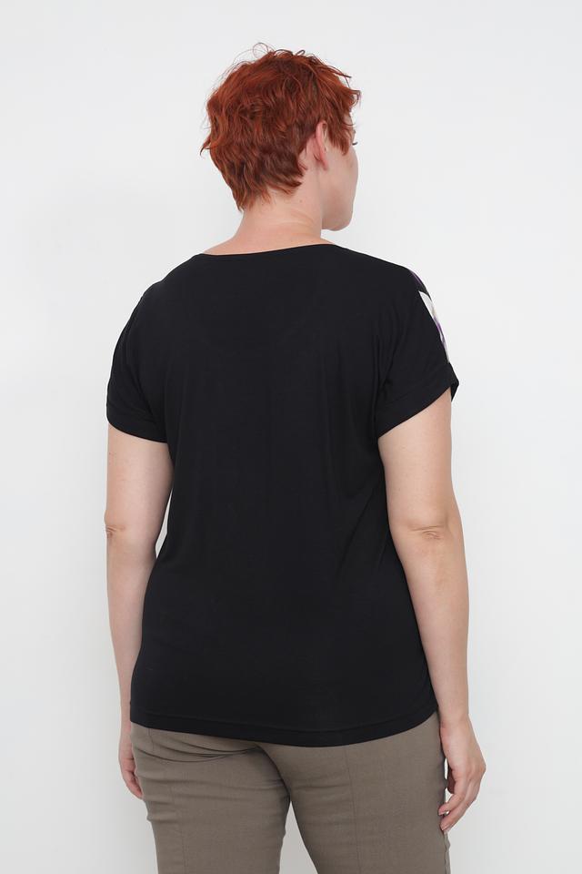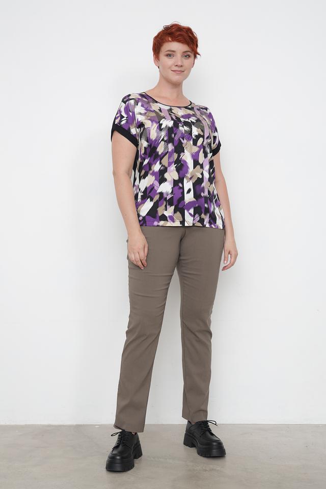 Модель имеет свободный крой, короткие рукава и округлый вырез горловины. Блуза изготовлена из высококачественной вискозы с добавлением эластана, что обеспечивает мягкость, приятные тактильные ощущения и хорошую драпировку.