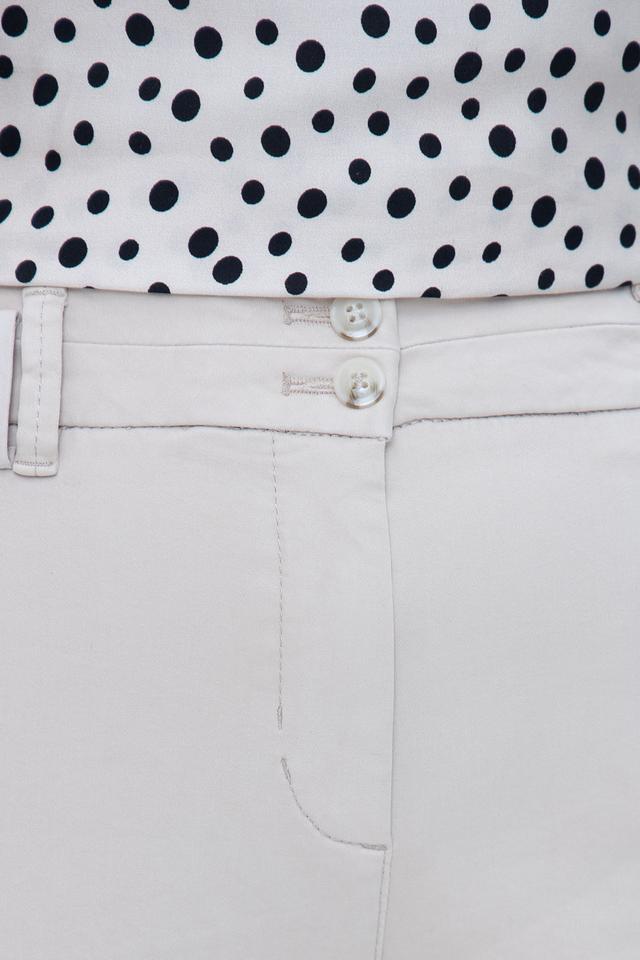 Брюки имеют классический крой с зауженными к низу штанинами, что визуально удлиняет ноги и придает силуэту стройность. Застежка на молнию и пуговицу обеспечивает надежную фиксацию. Модель дополнена функциональными карманами.