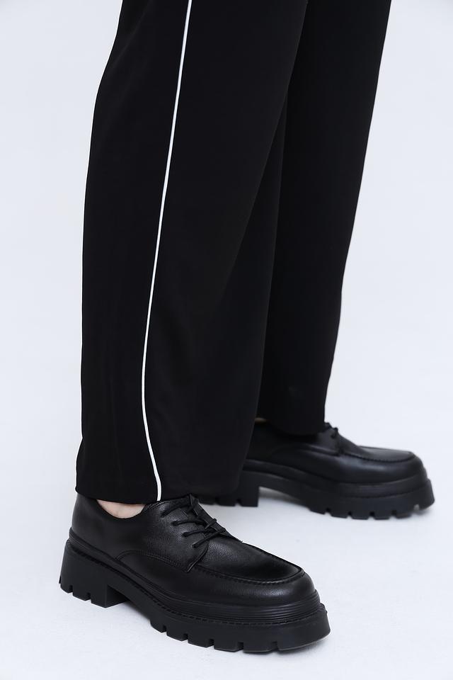 Брюки имеют прямой крой, который обеспечивает свободу движений и комфорт в течение всего дня. Эластичный пояс гарантирует идеальную посадку по фигуре. Боковые полосы добавляют стильный акцент и визуально удлиняют силуэт.