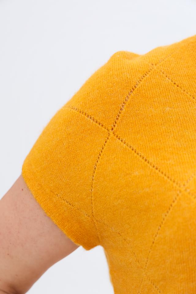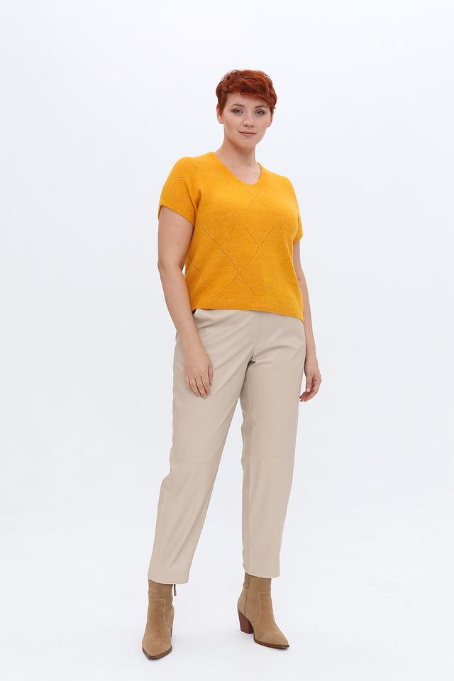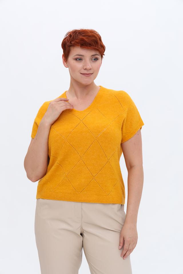 Женский пуловер Gerry Weber горчичного цвета с узором ромбами станет стильным дополнением к вашему гардеробу. Модель с V-образным вырезом и короткими рукавами идеально подходит для создания модных образов. Состав: полиамид 43%, полиакрил 39%, шерсть овечья 10%, шерсть альпаки 5%, эластан 3%