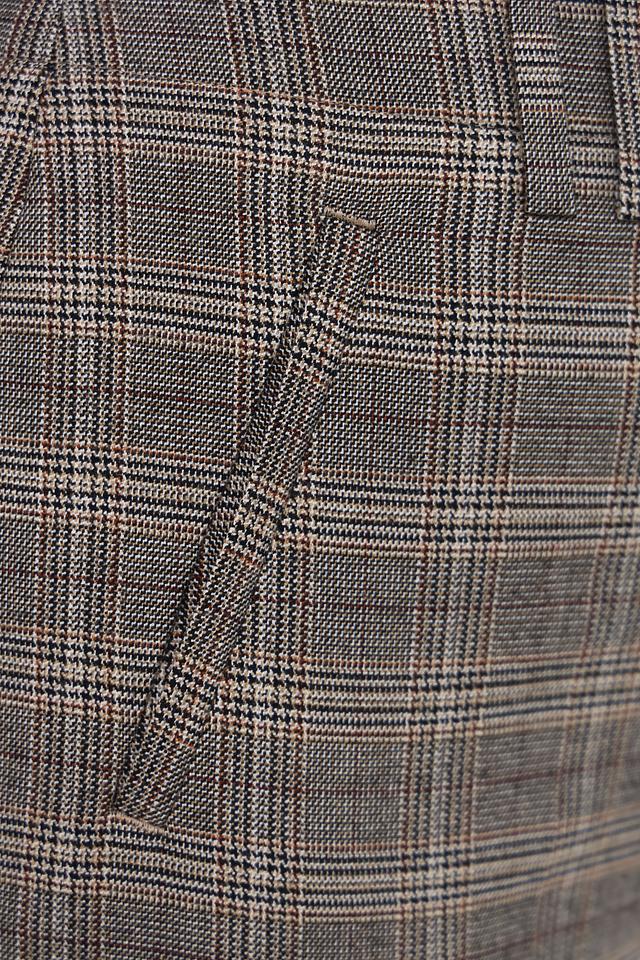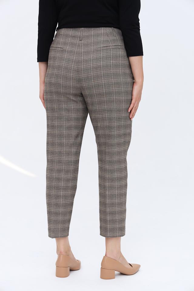 Основной цвет брюк – серый, но благодаря клетчатому рисунку в коричневых и белых тонах, они выглядят очень интересно и стильно. Брюки имеют стандартную посадку на талии и застегиваются на молнию и пуговицу. Наличие боковых карманов добавляет практичности.