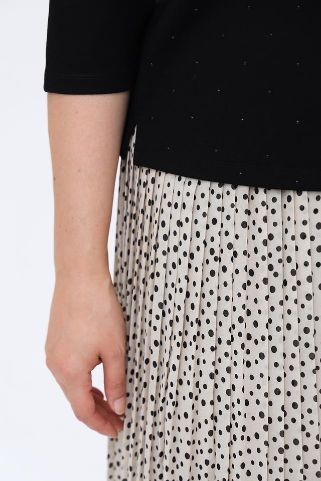 Пуловер имеет удобный крой, который обеспечивает комфортную посадку по фигуре. Округлый вырез горловины и рукав три четверти делают его универсальным для любого времени года. Деликатная вышивка по всей поверхности изделия добавляет изысканности и оригинальности.