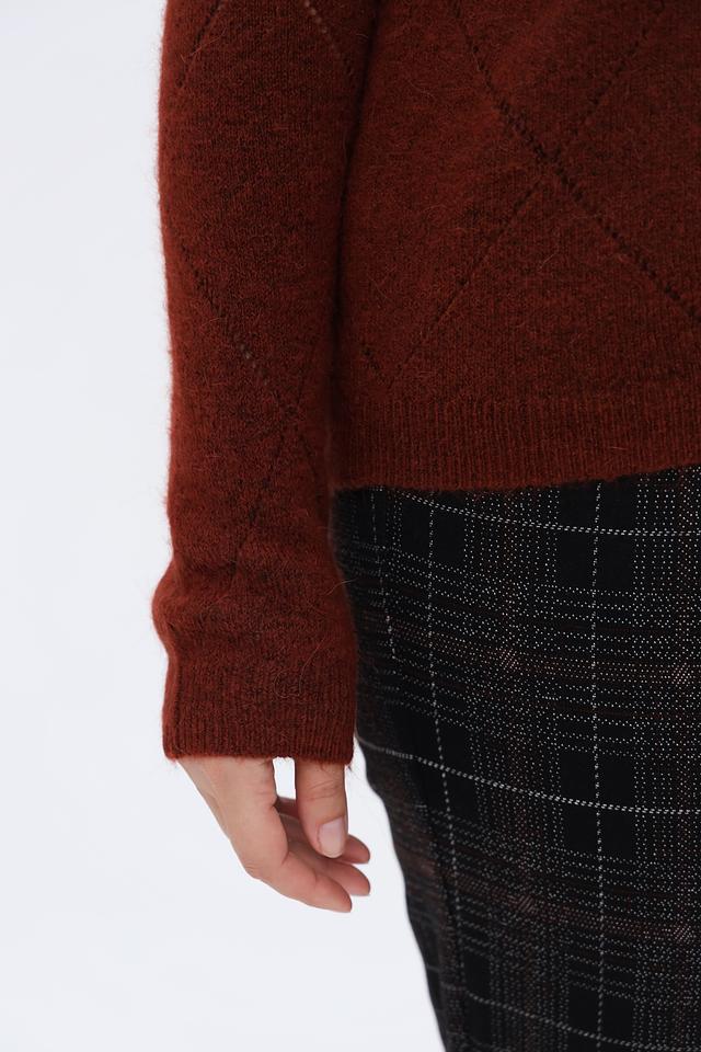 Женский пуловер Gerry Weber терракотового цвета с узором в виде ромбов. Изготовлен из мягкой смеси шерсти и полиамида, обеспечивающей комфорт и тепло. Стильный и удобный выбор для повседневного гардероба. Состав: полиамид 43%, полиакрил 39%, шерсть овечья 10%, шерсть альпаки 5%, эластан 3%