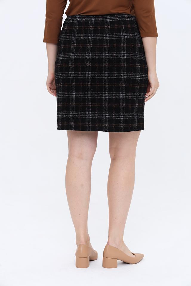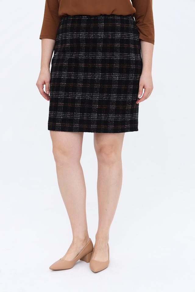 Прямой силуэт юбки визуально вытягивает фигуру, а длина до колена делает ее подходящей для различных случаев – от деловых встреч до повседневных прогулок. Ткань с клетчатым рисунком добавляет образу изысканности и стиля.