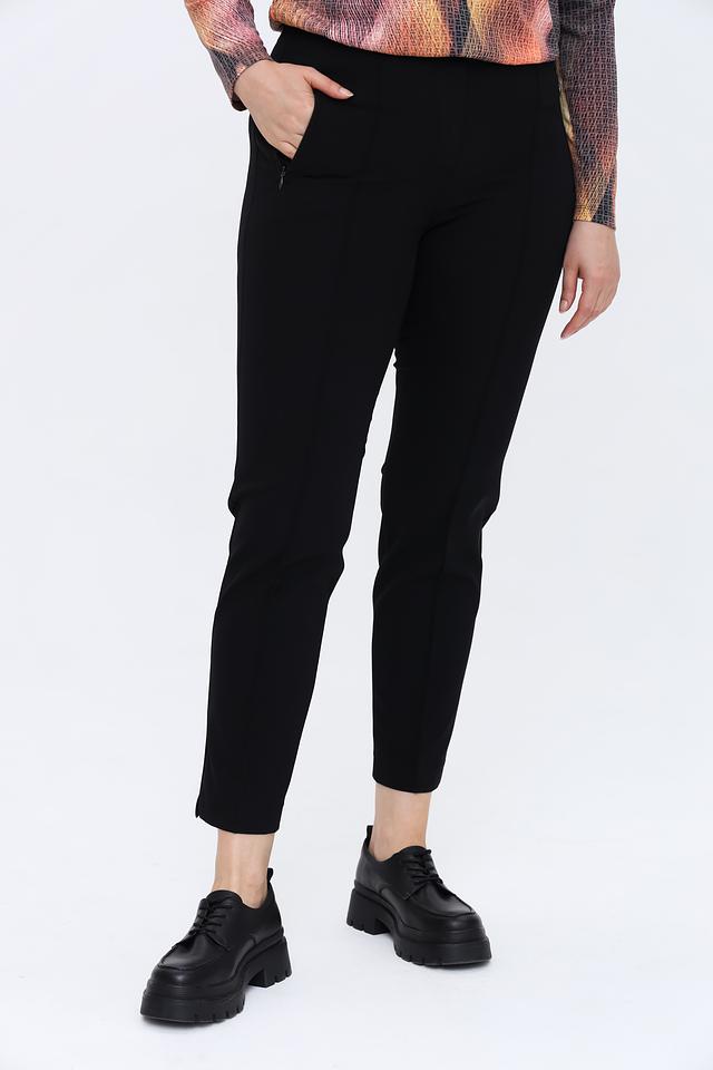 Модель оснащена боковыми карманами и задними карманами с застёжкой на молнию. Застёжка на молнию и пуговица обеспечивает надежную фиксацию. Брюки подойдут для женщин, ценящих качество, комфорт и элегантный стиль.