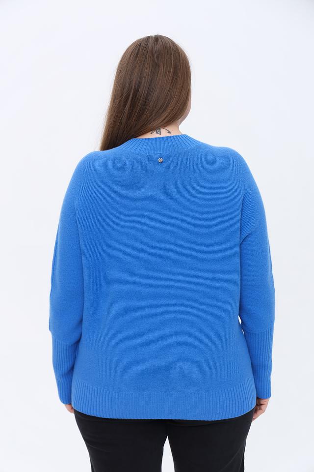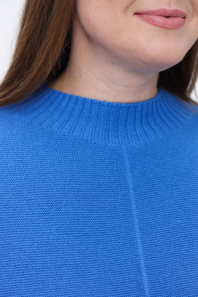 Модель отличается высоким горлом, которое добавляет элегантности, и слегка заниженной линией плеч, что придает ей современный вид. Пуловер имеет длинные рукава с манжетами и прямую посадку по фигуре.