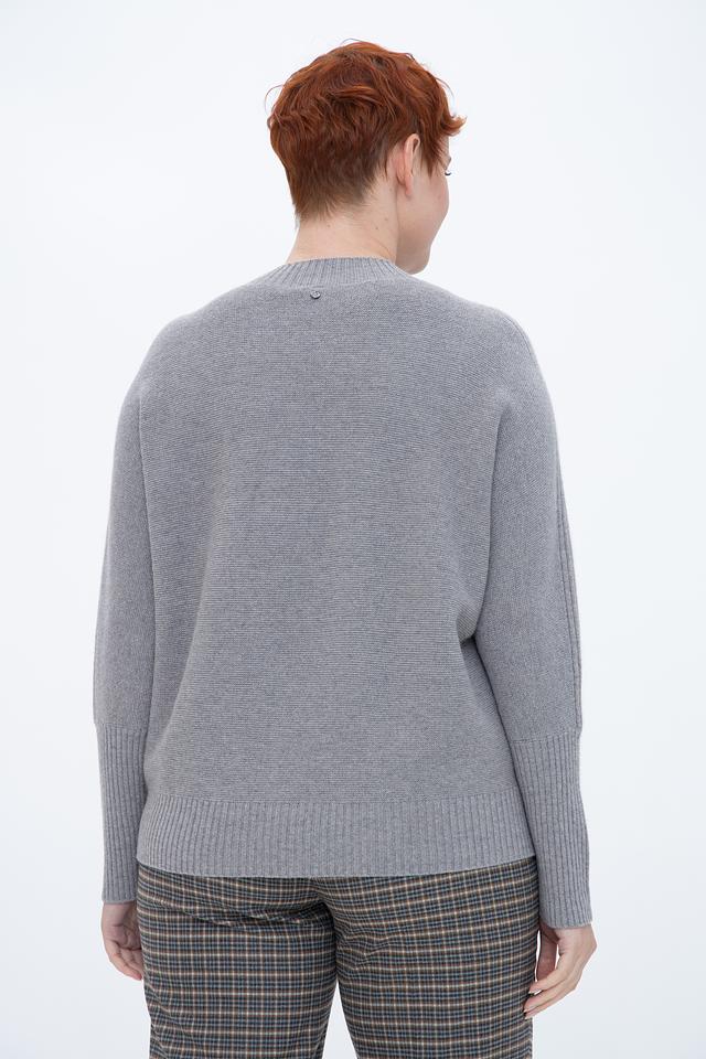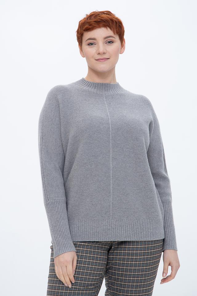 Модель имеет прямой крой, вырез горловины и рукава ¾. Пуловер выполнен из высококачественной смеси шерсти (50%), полиамида (30%) и модала (20%), что обеспечивает мягкость, тепло и комфорт в носке.