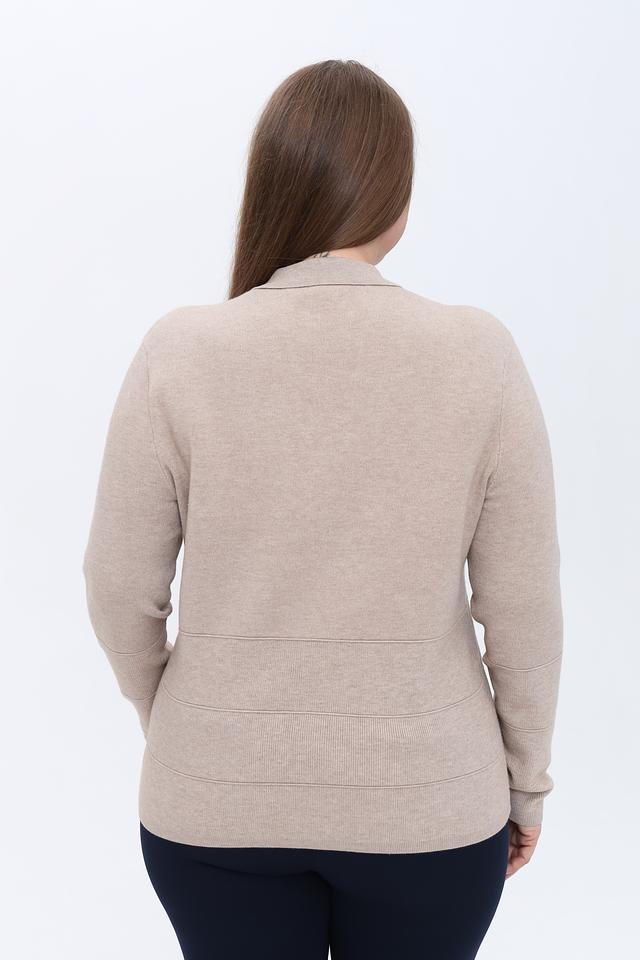 Модель имеет воротник-стойку, который добавляет изысканности образу. Горизонтальная текстура придает пуловеру интересный вид. Пуловер имеет удобный крой, который обеспечивает комфорт при носке.