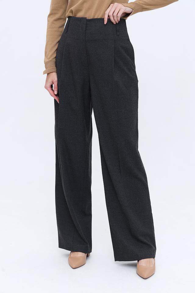 Брюки имеют прямой крой и широкие штанины, что придает им современный и стильный вид. Завышенная талия подчеркивает фигуру и обеспечивает комфортную посадку.