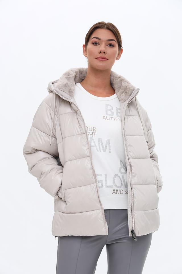 Стильная куртка Gerry Weber EDITION серого цвета с отделкой искусственным мехом на капюшоне. Удобный крой и стеганая текстура делают эту модель идеальным выбором для прохладной погоды. Состав: полиамид 100%
