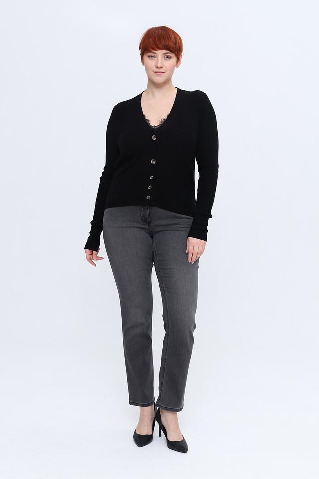 Чёрный кардиган Gerry Weber из тонкой вязки с V-образным вырезом и застёжкой на пуговицы. Модель выполнена из мягкой смеси шерсти, вискозы и кашемира, обеспечивающей комфорт и тепло. Состав: шерсть 47%, вискоза 38%, полиамид 10%, кашемир 5%