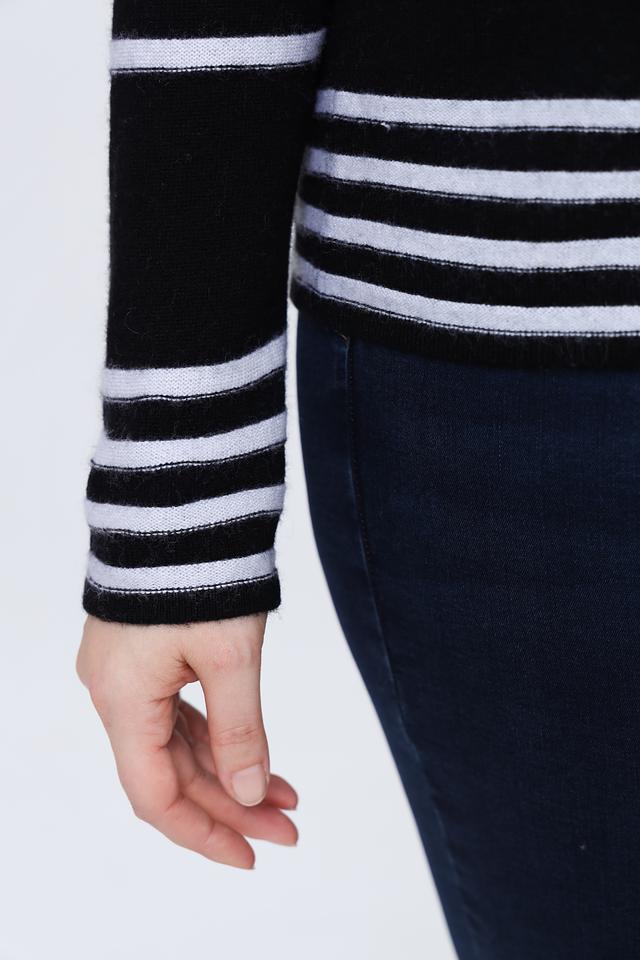Этот пуловер от Gerry Weber станет прекрасным дополнением к вашему образу. Он выполнен в классическом чёрном цвете с контрастными белыми полосами, что придает ему элегантный и современный вид.