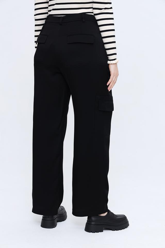 Брюки имеют прямой крой, который обеспечивает комфортную посадку и свободу движений. Особенностью модели являются накладные карманы в стиле карго, добавляющие образу современный акцент.