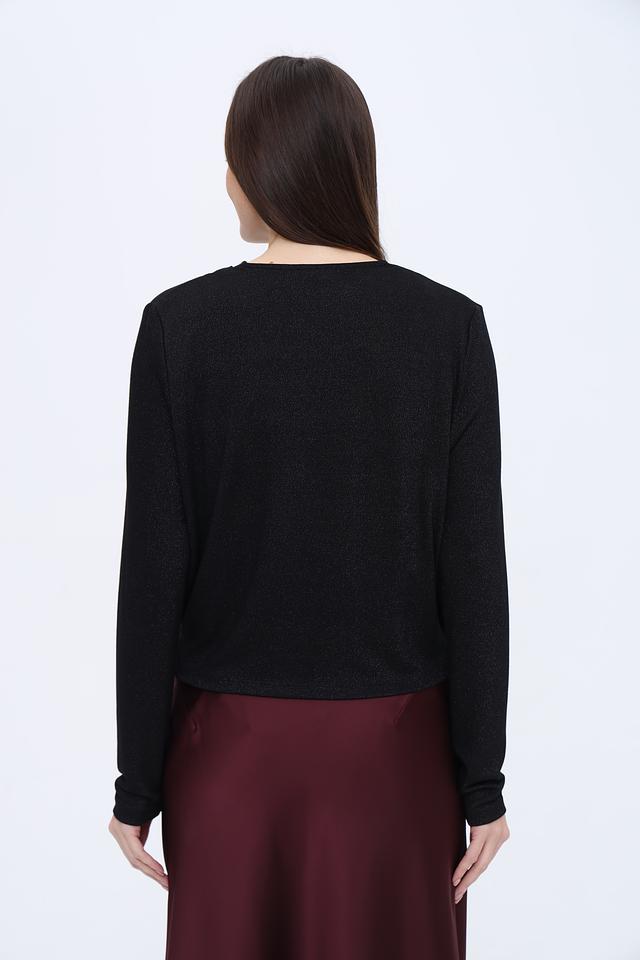 Особенностью данной модели является V-образный вырез и эффектный запах, который визуально корректирует силуэт и придает женственности. Длинные рукава делают блузу подходящей для прохладной погоды или для создания более формального образа.