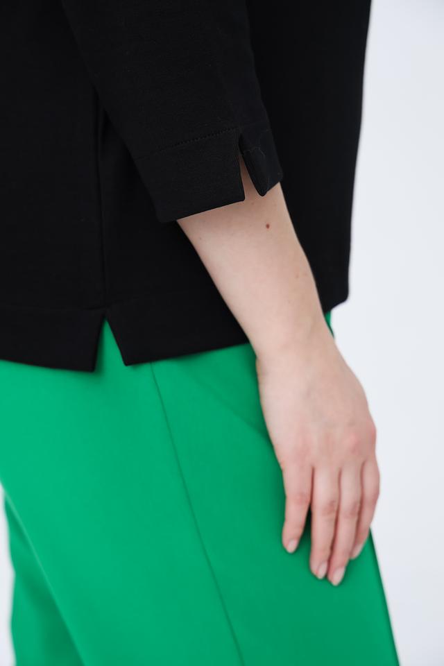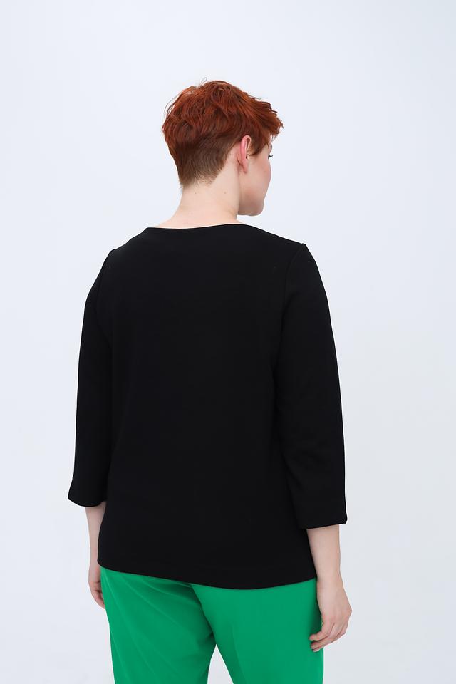 Модель имеет удобный крой с рукавами 3/4 и округлым вырезом горловины. Пуловер изготовлен из высококачественного трикотажа, в состав которого входит лиоцел, хлопок и переработанный полиэстер, что обеспечивает комфорт и долговечность изделия.