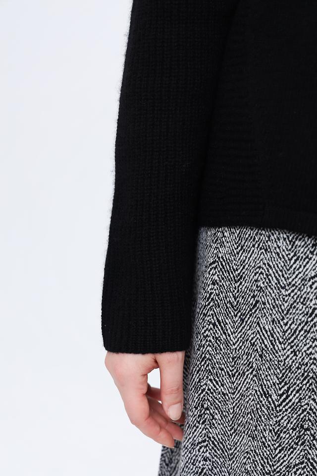 Пуловер имеет классический крой с длинными рукавами и высоким горлом, что делает его идеальным для создания элегантных и повседневных образов. Текстура вязки придает изделию особый шарм и визуальный интерес.