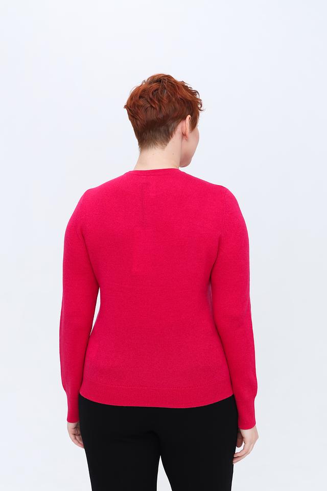 Яркий малиновый цвет пуловера делает его акцентным элементом гардероба, который легко сочетается с различными вещами. Этот пуловер станет отличным дополнением к вашему образу, добавив ему женственности и стиля. Рекомендуется деликатный уход за изделием, чтобы сохранить его первоначальный вид и качество.
