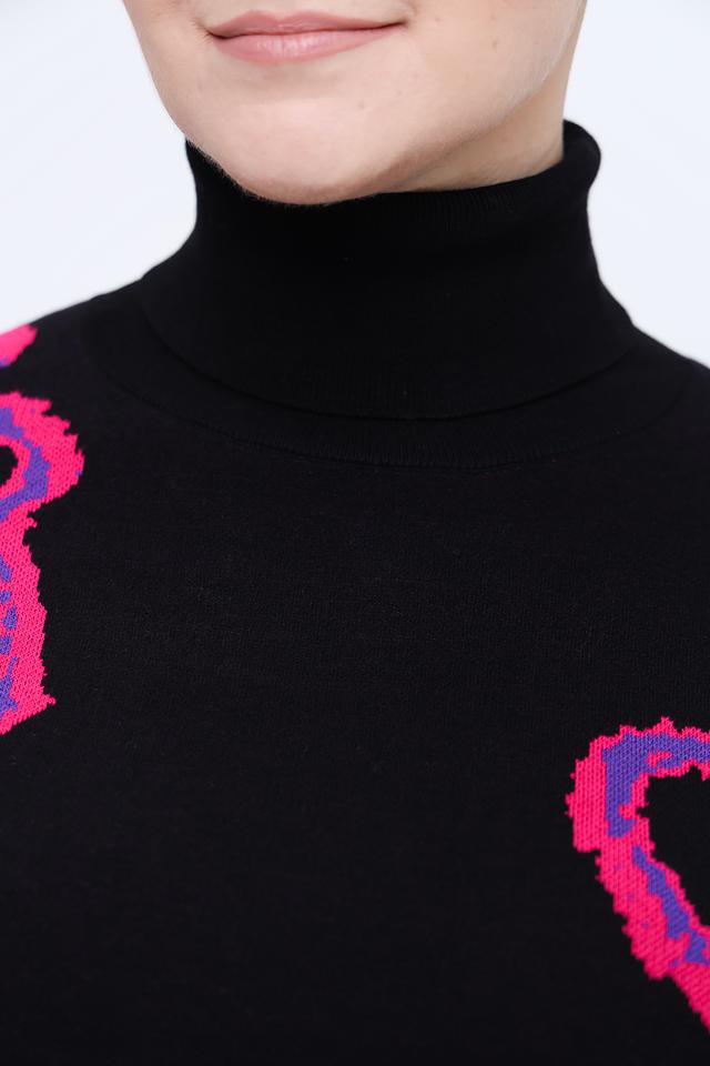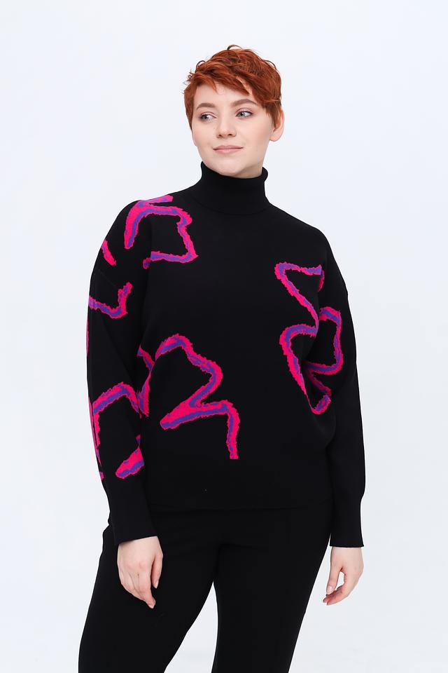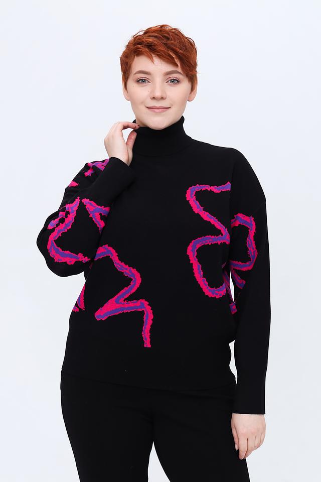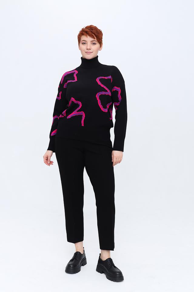 Чёрный пуловер Gerry Weber с ярким розовым принтом – стильное и комфортное решение для повседневного образа. Модель выполнена из мягкого трикотажа с добавлением вискозы, что обеспечивает приятные ощущения при носке. Состав: вискоза 62%, полиэстер 38%