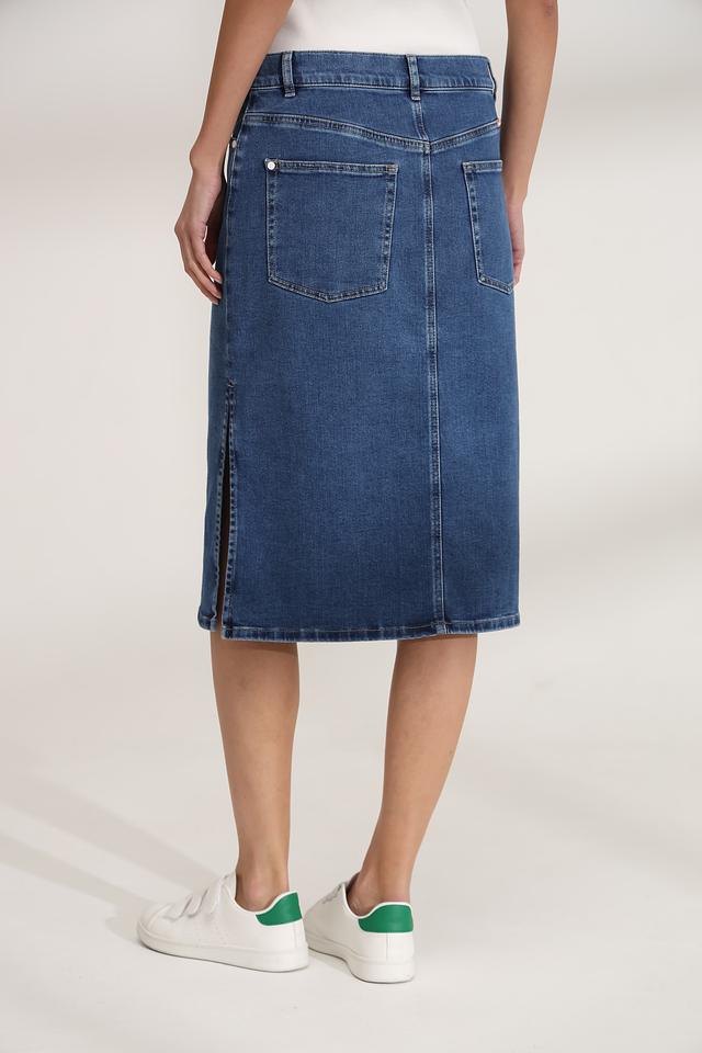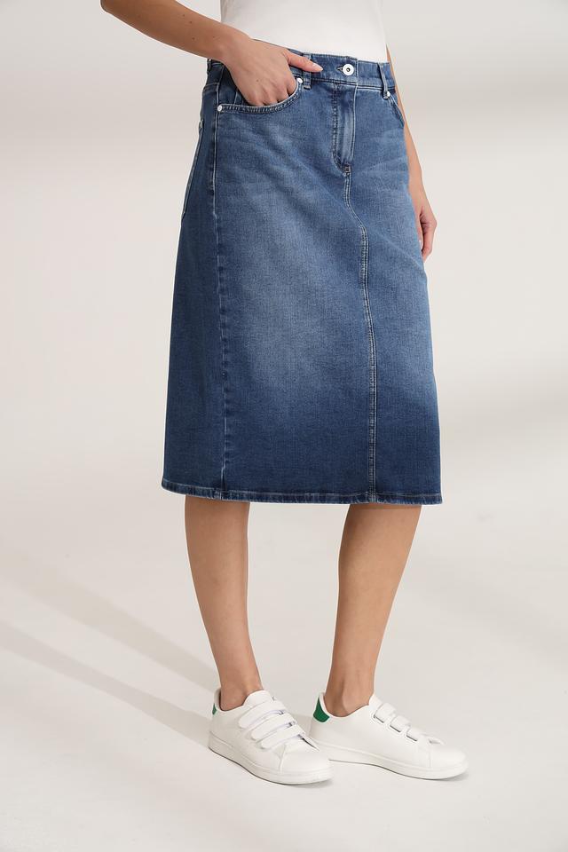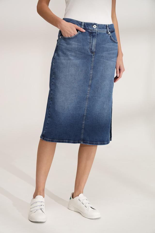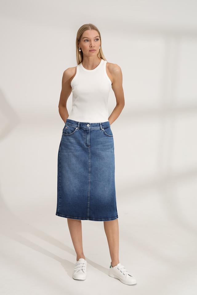 Синяя джинсовая юбка Gerry Weber длиной миди – стильное и комфортное решение для повседневного образа. Модель выполнена из хлопка с добавлением эластана, что обеспечивает удобную посадку и свободу движений. Состав: хлопок 92%, эластомультиэстер 6%, эластан 2%