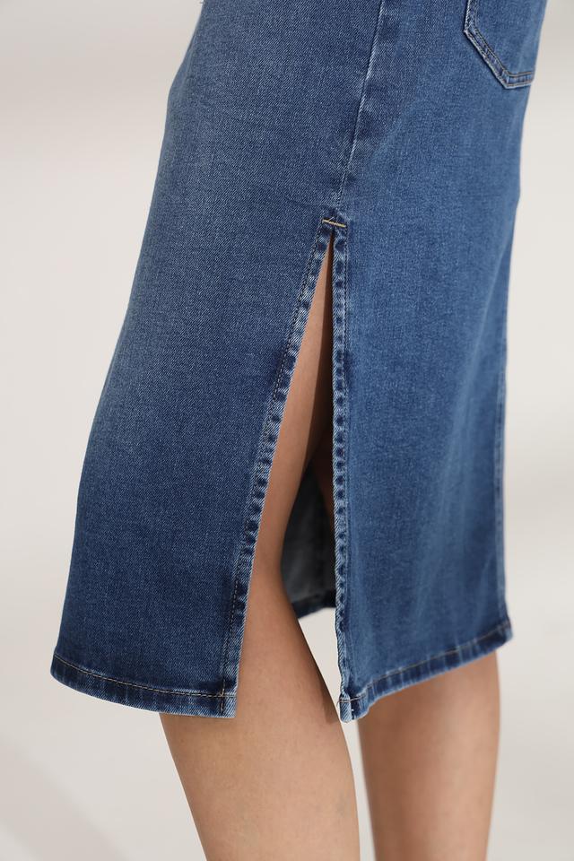 Юбка имеет прямой крой и длину миди, что делает ее универсальной для различных типов фигур. Застежка на молнию и пуговицу в поясе обеспечивает надежную фиксацию. На передней части юбки расположены функциональные карманы.