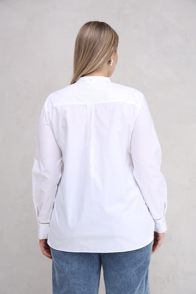 Рубашка имеет свободный крой, который обеспечивает комфорт в носке и позволяет легко сочетать ее с различными предметами одежды – от джинсов до юбок. Декоративные элементы в виде небольших разрезов на рукавах придают рубашке оригинальность и изысканность.
