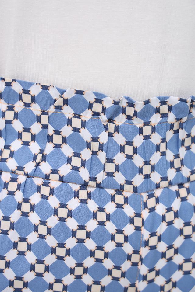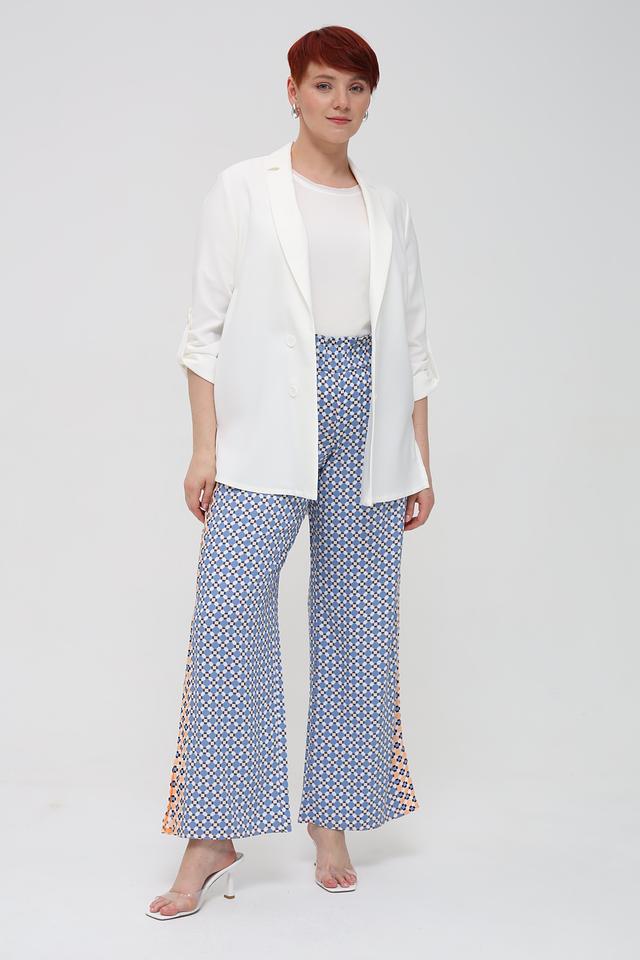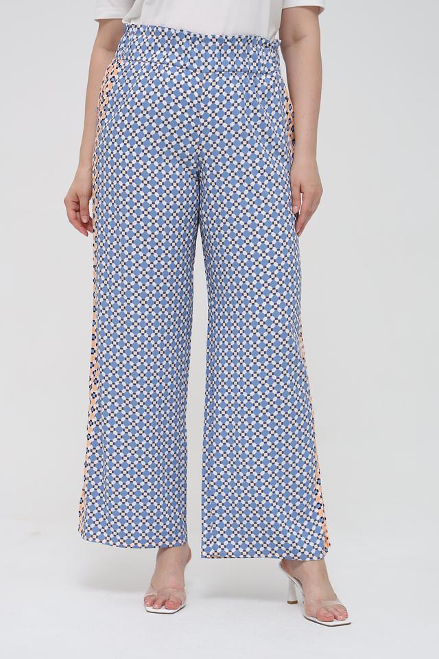 Эти стильные брюки от Gerry Weber EDITION станут прекрасным дополнением к вашему гардеробу. Брюки выполнены в приятной голубой цветовой гамме и украшены ярким геометрическим принтом, сочетающим в себе оттенки голубого и персикового.