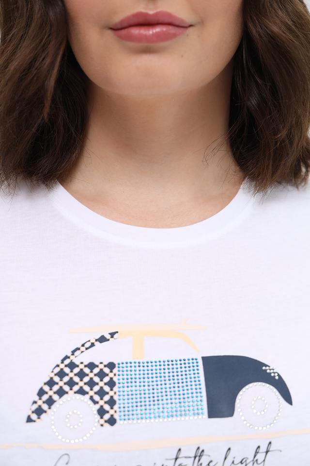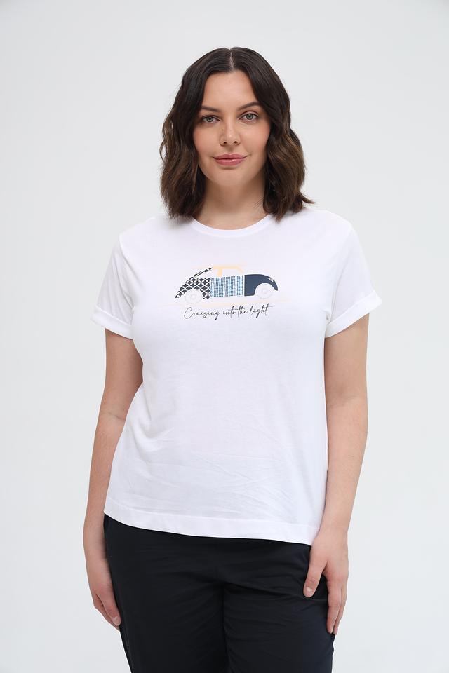 Белая футболка Gerry Weber EDITION с оригинальным принтом в виде силуэта автомобиля. Изготовлена из 100% хлопка, обеспечивающего комфорт и воздухопроницаемость. Стильный и удобный выбор для повседневного образа. Состав: хлопок 100%