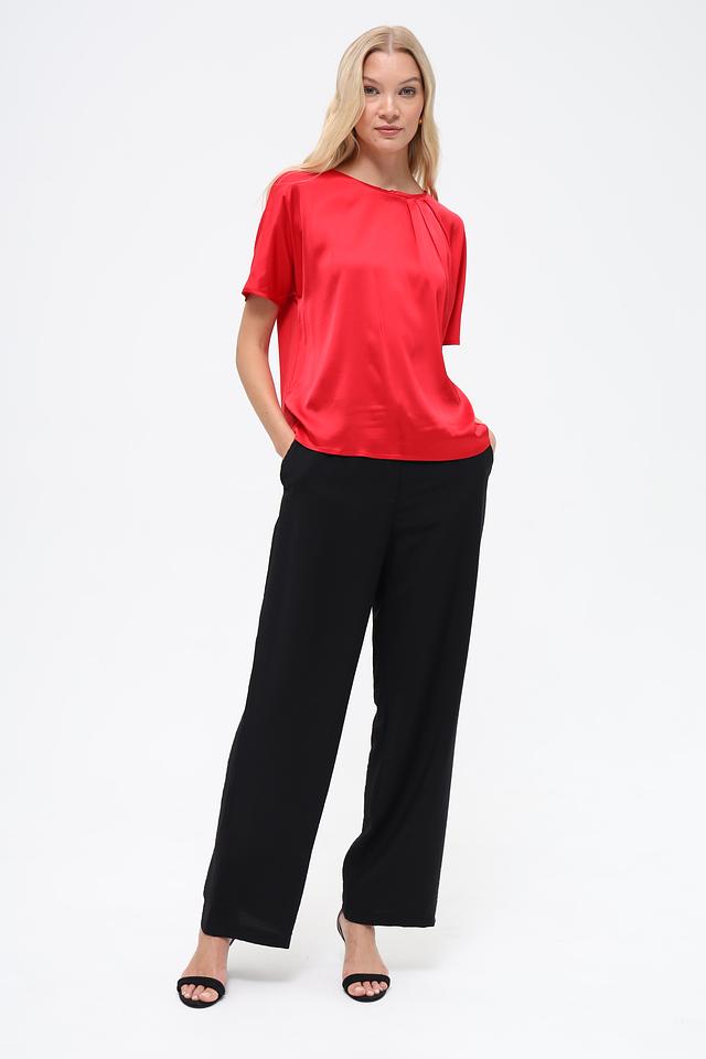 Брюки имеют прямой крой, который визуально удлиняет ноги и создает стройный силуэт. Эластичный пояс обеспечивает комфортную посадку и свободу движений. Модель дополнена боковыми карманами.