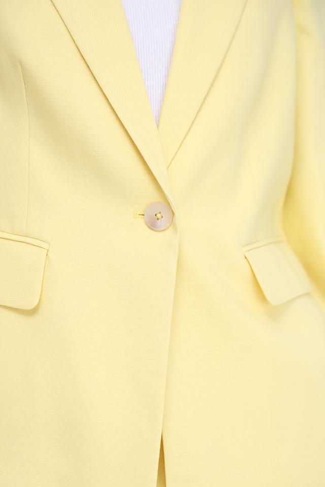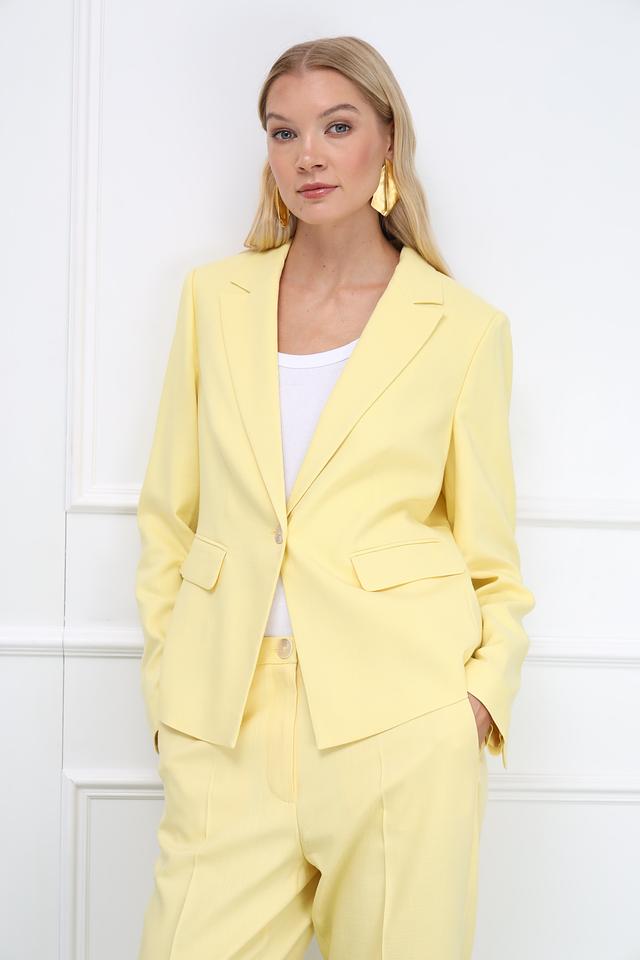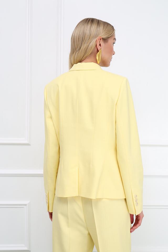 Этот жакет от Gerry Weber выполнен в нежном светло-жёлтом цвете, который привнесет свежесть и легкость в ваш образ. Жакет имеет классический крой с лацканами и застежкой на одну пуговицу.