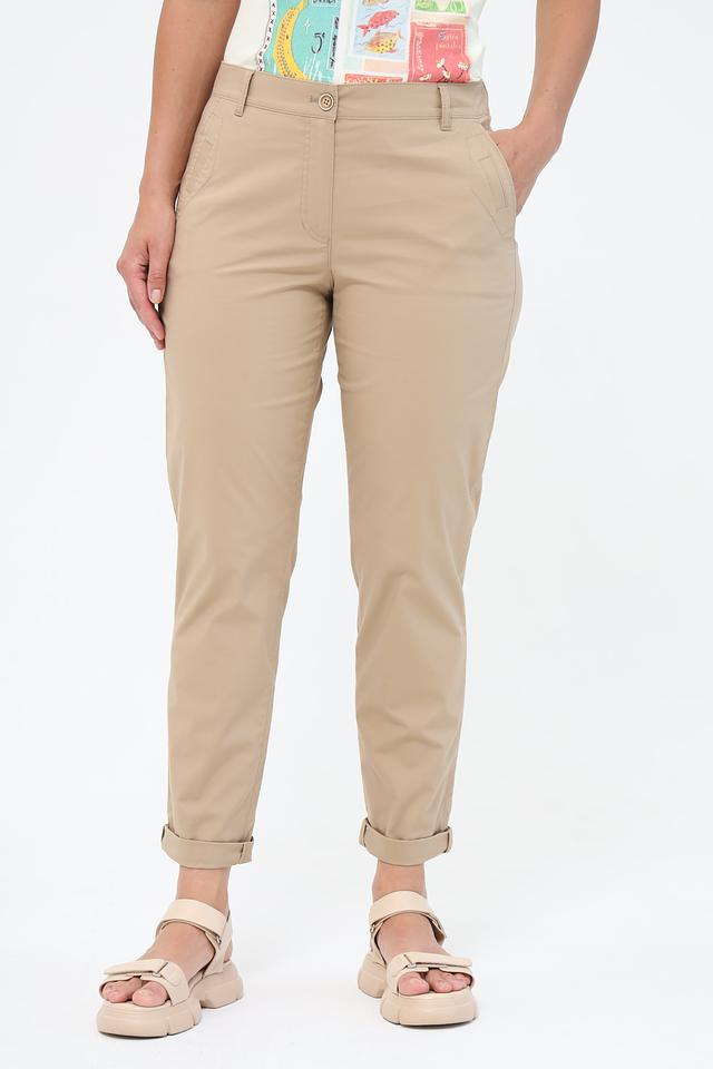 Брюки имеют классический крой с зауженными штанинами и длиной 7/8, что делает их универсальными для создания различных образов. Удобная посадка и эластичный материал обеспечивают комфорт в течение всего дня.