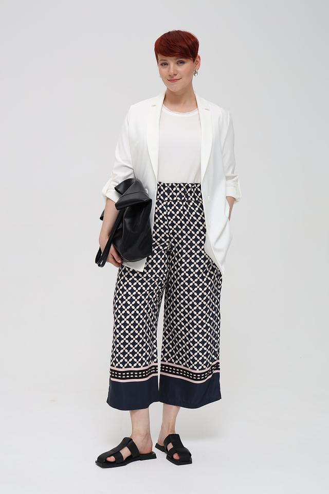Широкие брючины длиной 7/8 делают эти брюки идеальным выбором для создания модных и элегантных образов. Они прекрасно сочетаются с различными видами обуви и верхней одежды, позволяя вам создавать разнообразные стили.