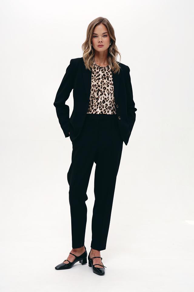 Брюки имеют прямой крой и стандартную посадку по талии. Материал – сочетание вискозы, полиамида и эластана, что обеспечивает комфорт в носке, приятные тактильные ощущения и хорошую форму.