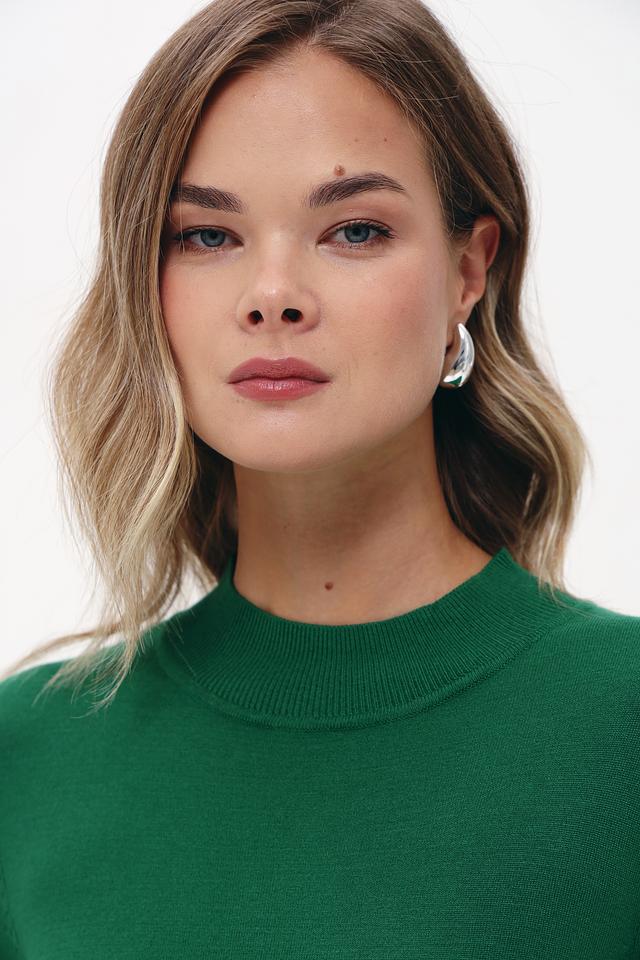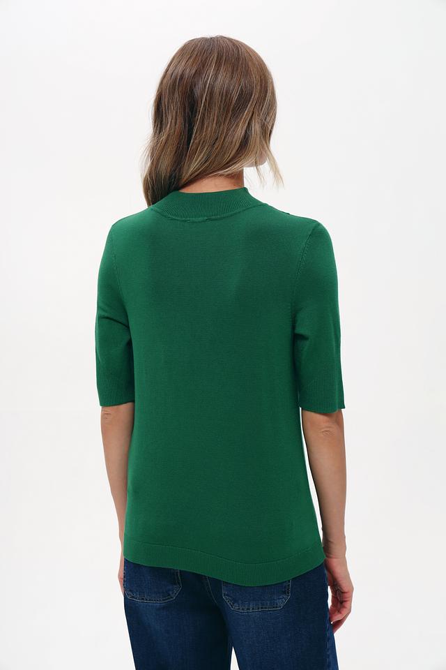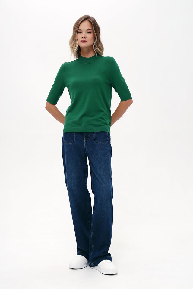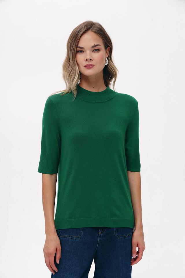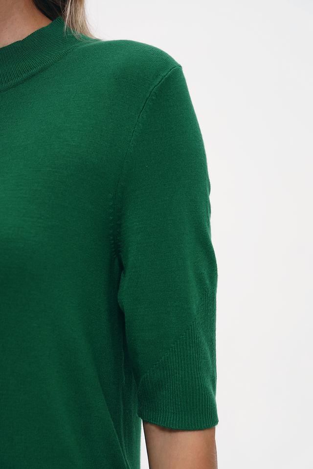 Пуловер имеет классический крой с короткими рукавами и округлым вырезом горловины. Насыщенный изумрудный цвет добавит яркости и свежести вашему образу. Благодаря своему лаконичному дизайну, этот пуловер легко сочетается с различными элементами одежды – от джинсов и брюк до юбок и шорт.