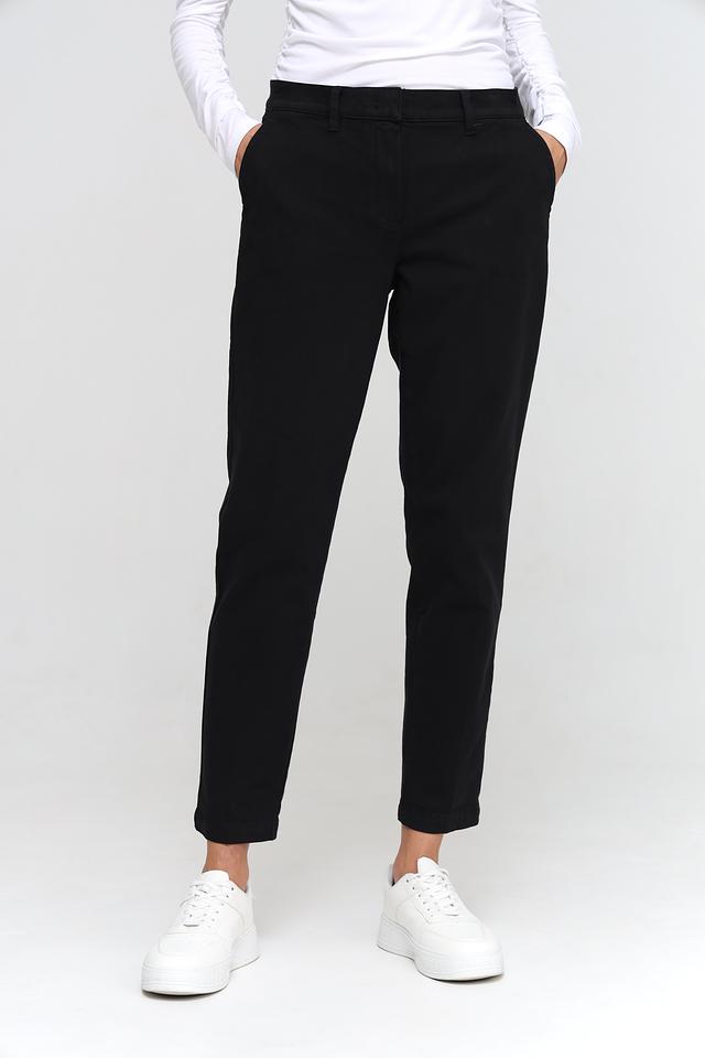 Брюки имеют прямой крой и стандартную посадку по фигуре, обеспечивая комфорт в течение всего дня. Материал – сочетание хлопка, лиоцелла, эластомультиэстера и эластана, что гарантирует мягкость, воздухопроницаемость и небольшую эластичность.