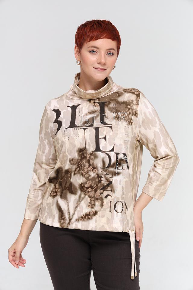 Женский пуловер Gerry Weber бежевого цвета с оригинальным принтом. Изготовлен из мягкой вискозы с добавлением эластана для комфорта и хорошей посадки. Состав: вискоза 94%, эластан 6%
