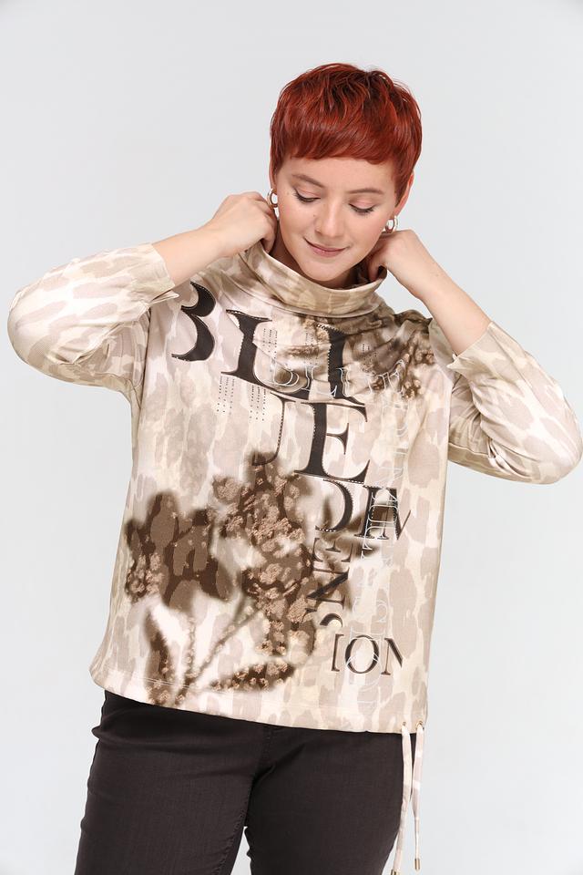 Этот стильный пуловер от Gerry Weber станет прекрасным дополнением к вашему гардеробу. Пуловер выполнен в бежевой цветовой гамме и украшен эффектным абстрактным принтом, который придает ему индивидуальность.