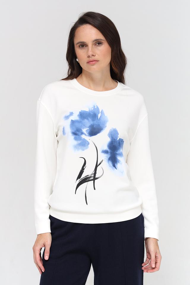 Этот стильный пуловер от Gerry Weber станет прекрасным выбором для создания уютного и элегантного образа. Пуловер выполнен в белом цвете и украшен ярким цветочным принтом, который придает ему особую изысканность.