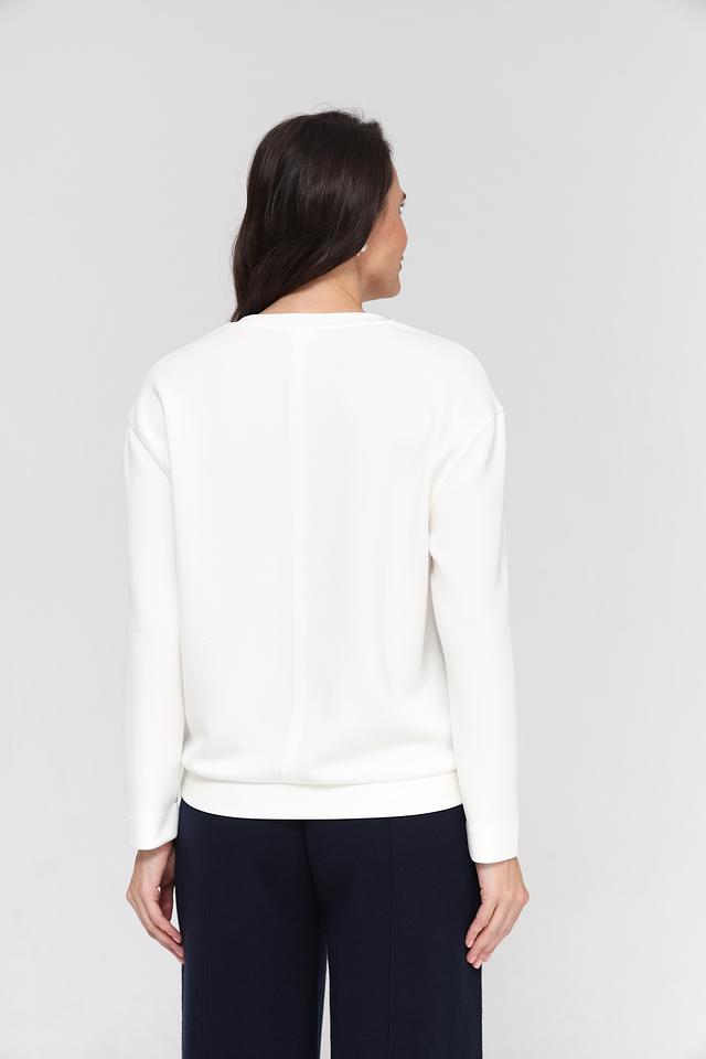 Модель имеет классический крой с круглым вырезом горловины и длинными рукавами. Пуловер изготовлен из высококачественного материала, в составе которого модал, полиэстер и эластан. Благодаря этому он обладает мягкостью, приятными тактильными ощущениями и хорошо держит форму.
