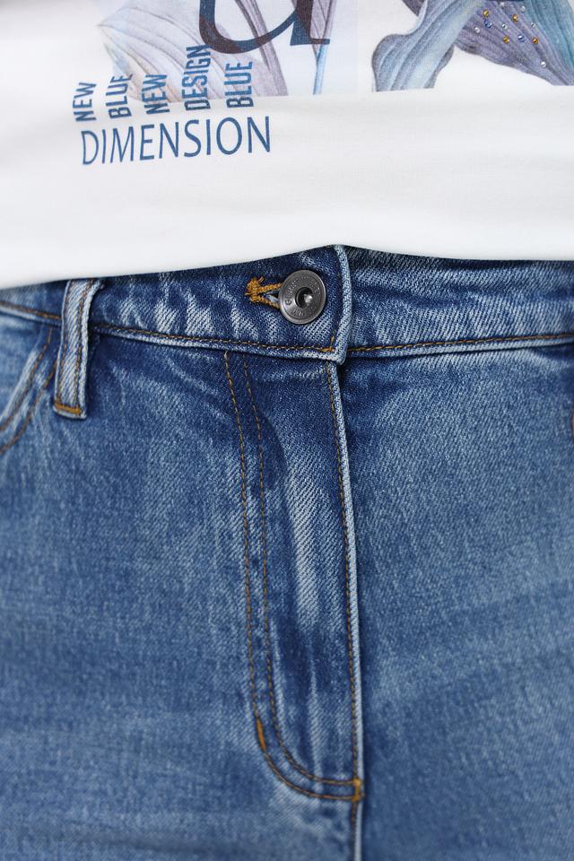 Завершающим штрихом является небольшой эффект потертости, который придает джинсам более непринужденный и современный вид.